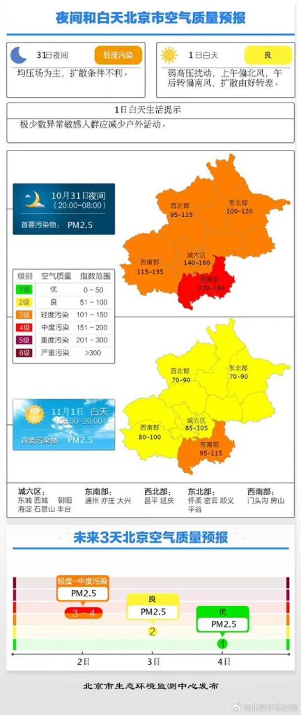 31昼夜间,均压场为主,扩散要求不利,预测要紧羞耻物为PM2.5,空气质料3级,轻度羞耻。